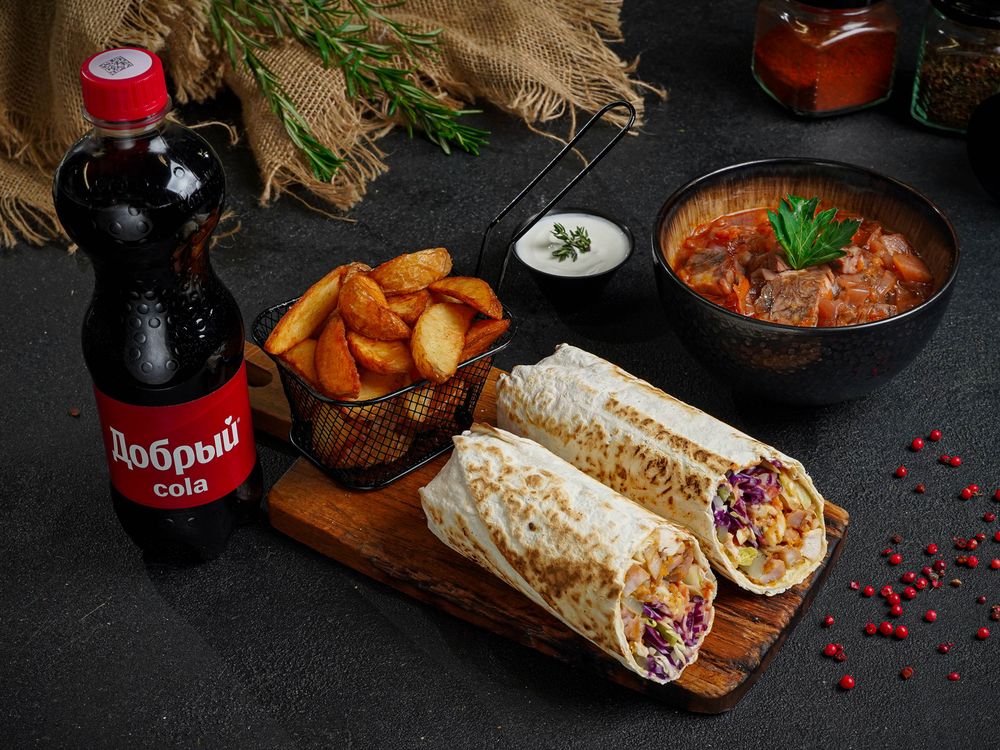 Борщ ,шаурма классическая ,картофель по- деревенски , кола Добрый[AT]